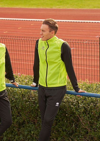 The sleeveless cut keeps your arms free for unrestricted movement, while mesh inserts enhance ventilation to regulate temperature during intense runs. Bright colors, rear reflectors, and a reflective Erreà logo boost visibility, keeping you safer when training on the road in low light.