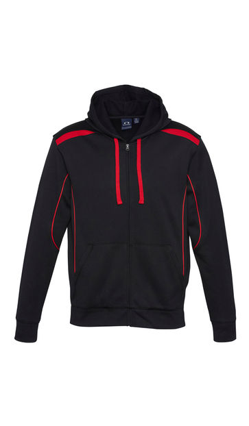 {'sizes': 'S - 3XL, 5XL', 'extras': [], 'fabric': ['100% Polyester Fleece', '245 GSM'], 'features': ['Contrast shoulder panels and piping', 'Full front zipper with kangaroo pocket', 'Matching modern loose-fit hem ribbing']}