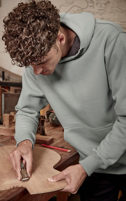 {'sizes': 'XXS - 5XL, 7XL', 'fabric': '55% Cotton 45% Polyester - 320 gsm', 'features': ['Safety drawstring to prevent catching', 'Woven arm pen pocket in contrast fabric', 'Two angled side hip pockets with closure for mobile phone and tools', 'Two kangaroo pockets to keep your hands warm even on the coldest days', 'Soft warm fleece lining', 'Mesh hood lining', 'Ribbed knit on hem and cuffs', 'Reinforced at all key stress points with bar tacks']}